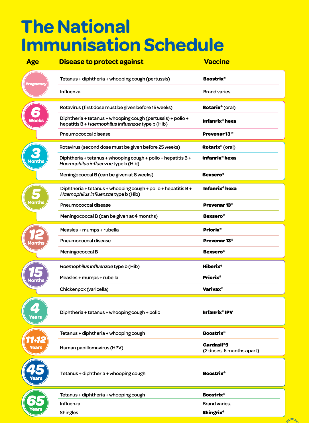 For more information view the NZ immunisation schedule.
